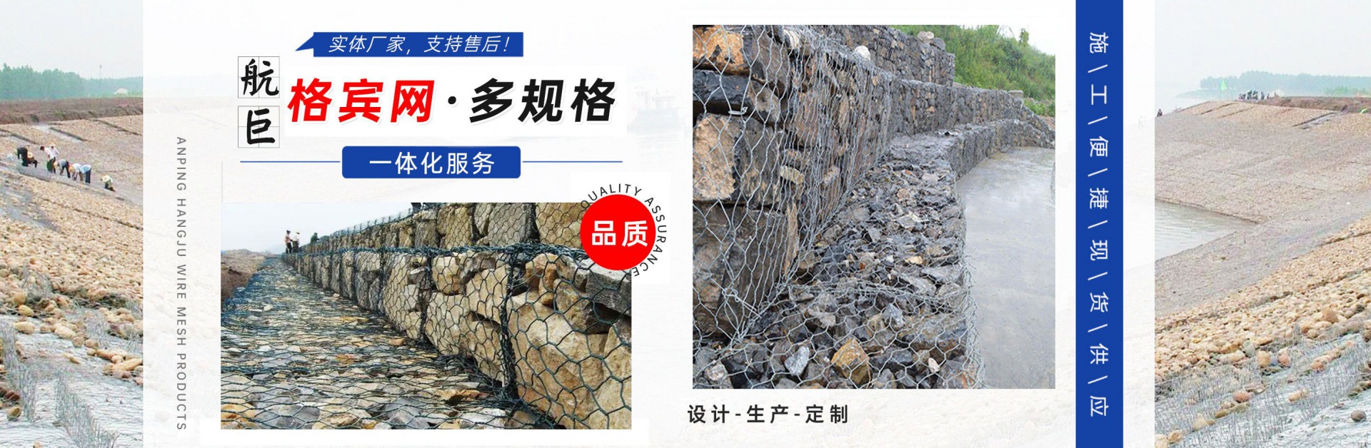 安平縣航巨絲網(wǎng)制品有限公司位于富有“絲網(wǎng)之鄉(xiāng)”美譽(yù)的—河北安平縣,此地是世界上最大的絲網(wǎng)集散基地,是華北平原上一顆璀璨的明珠。地處京、津、石三大城市中間,交通便利,是一家集生產(chǎn),加工,銷(xiāo)售為一體的大型絲網(wǎng)廠家。本廠專業(yè)生產(chǎn)各種類(lèi)型的絲網(wǎng),類(lèi)型齊全,主要包括:格賓石籠網(wǎng),雷諾護(hù)墊,麥克排水墊,加筋麥克墊,市政護(hù)欄,防爆籠,主動(dòng)防護(hù)網(wǎng),被動(dòng)防護(hù)網(wǎng),電焊網(wǎng)片,鋼格柵板等產(chǎn)品,形成了針對(duì)邊坡支護(hù)、基坑支護(hù)、山體邊坡綠化、鐵路、高速、公路、江河、堤壩及海塘的防沖刷保護(hù)以及水庫(kù)、河流截流等不同行業(yè)、不同規(guī)模、不同應(yīng)用的絲網(wǎng)產(chǎn)品和針對(duì)性解決方案,是國(guó)內(nèi)最有影響力的絲網(wǎng)產(chǎn)品供應(yīng)商。技術(shù)指標(biāo)達(dá)到國(guó)家同類(lèi)產(chǎn)品標(biāo)準(zhǔn),可以接受較大的定單并保證質(zhì)量和生產(chǎn)期限。 公司始終堅(jiān)持誠(chéng)信為本、質(zhì)量第一、客戶至上的經(jīng)營(yíng)理念,本著互惠互利的精神,希望與國(guó)內(nèi)外朋友共同合作,為您提供優(yōu)質(zhì)的產(chǎn)品和服務(wù)。我公司在創(chuàng)新管理中求發(fā)展、創(chuàng)新經(jīng)營(yíng)中求生存。把企業(yè)標(biāo)準(zhǔn)化管理、定額管理、計(jì)劃管理,公司十分注重把握市場(chǎng)經(jīng)濟(jì)的信息脈絡(luò),用現(xiàn)代網(wǎng)絡(luò)技術(shù),以科研開(kāi)發(fā)為原動(dòng)力,與科技院校及相關(guān)專家密切合作,共同研制開(kāi)發(fā)21世紀(jì)適用顧客需求的相關(guān)產(chǎn)品。 安平縣航巨絲網(wǎng)制品一直是以“質(zhì)量精良,交貨及時(shí),價(jià)格合理,服務(wù)周到”的宗旨來(lái)為廣大客戶服務(wù);并且本著“質(zhì)...